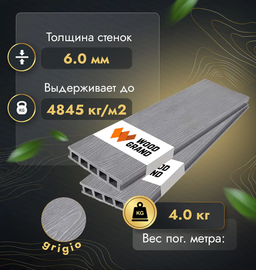 Российский бренд WOODGRAND также не уступает по этому показателю. Используя современные технологии производства и качественные материалы, компания обеспечивает высокую устойчивость своих досок к влаге и ультрафиолету.